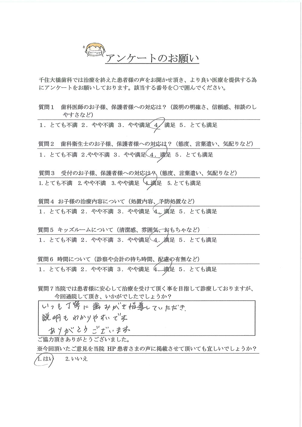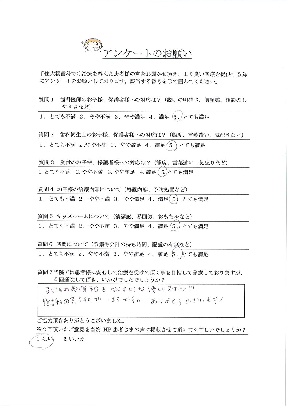 子どもの治療不安をなくすような優しい対応で感謝の気持ちで一杯です。